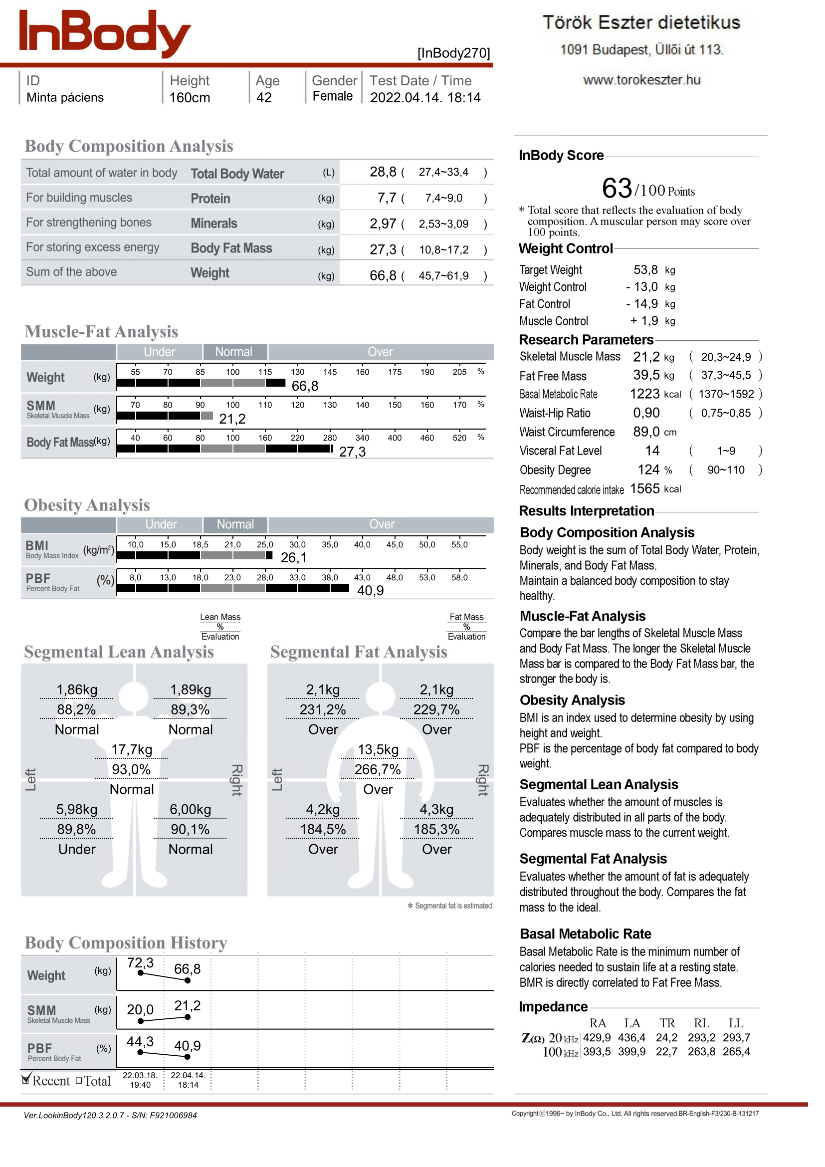 - Menstruáció esetén kérjen új időpontot, mivel ilyenkor nagyobb a test vízvisszatartása, ezért az eredmény pontatlan lesz!