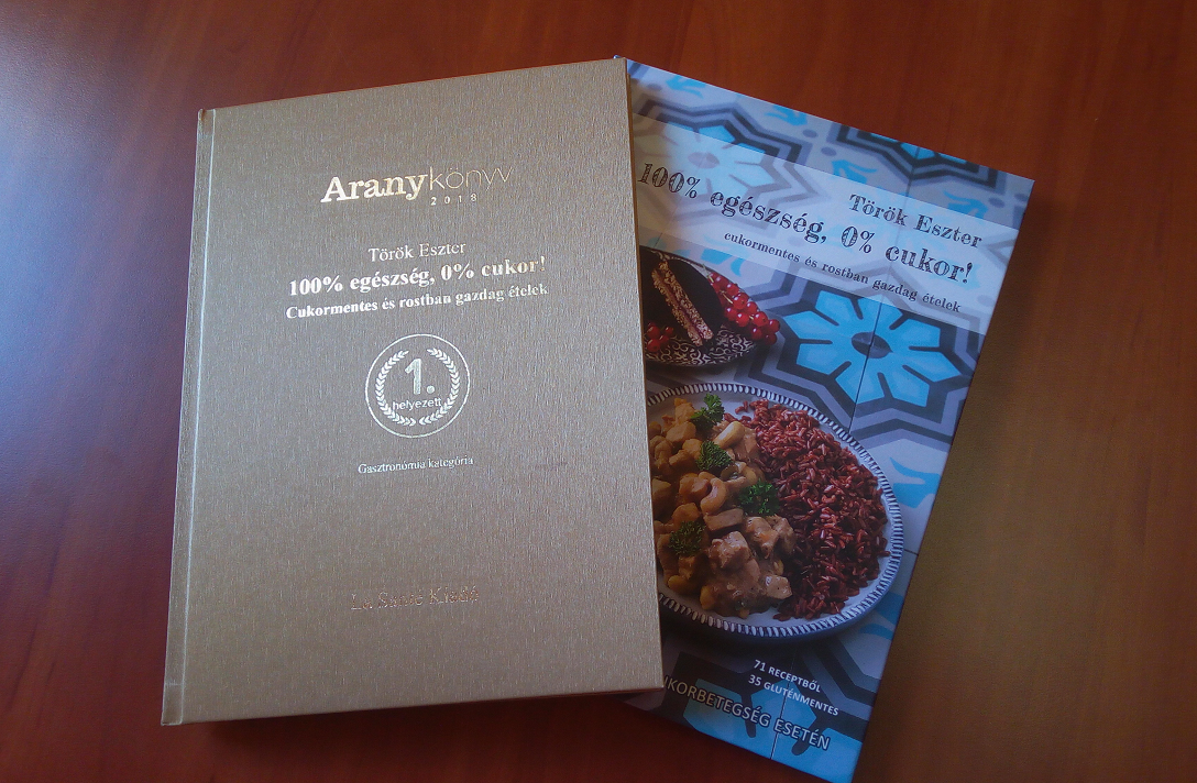 2017-ben jelent meg a második szakácskönyvem 100% EGÉSZSÉG, 0% CUKOR! címmel a La Santé Kiadónál. Ennél a kötetnél próbáltam ha lehet, még az előzőnél is jobb szakácskönyvet készíteni, mind külsőre, mind tartalomra. Bízom benne, hogy sikerült is, ami talán abból is látszik, hogy a 2018-as Aranykönyv szavazáson győztes lett, 1. helyezést ért el.